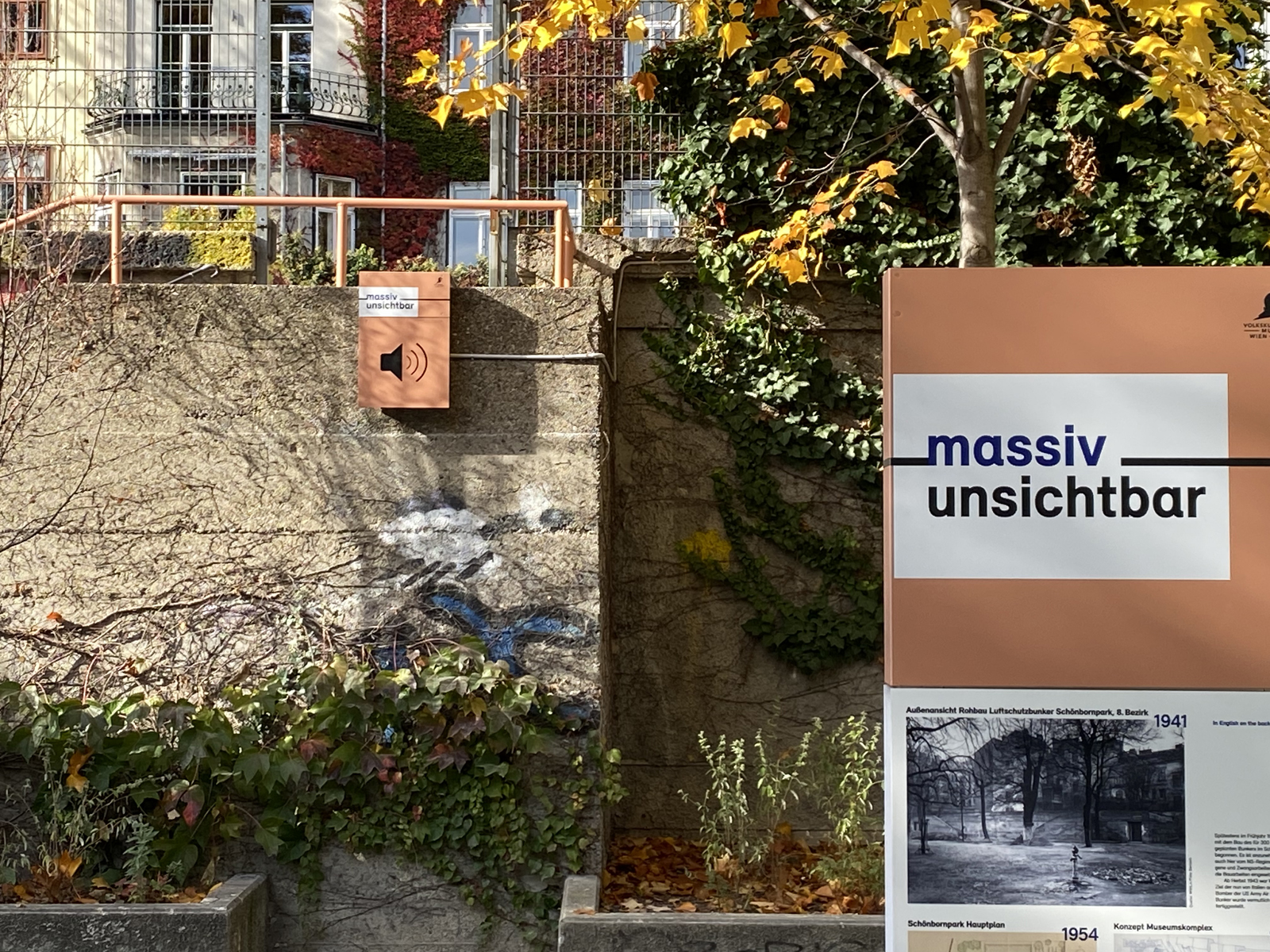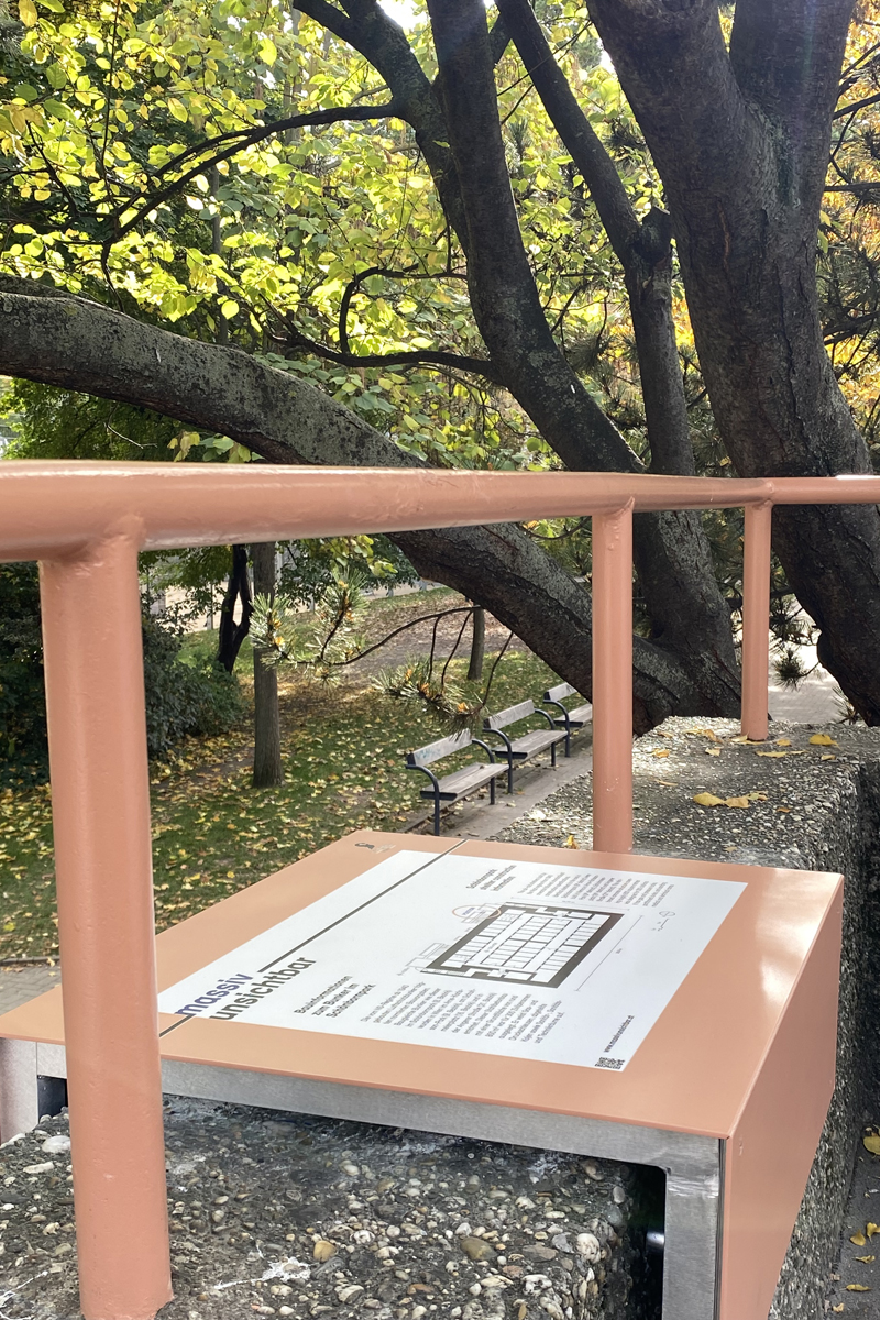 Dazu wurden althaler + oblasser büro für grafik und medien beauftragt, Grafik und Website für das Projekt zu entwickeln, sowie Elemente am Bunker und im Park zu gestalten, die Informationen vermitteln und Aufmerksamkeit wecken.